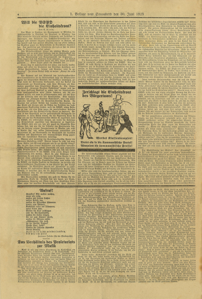 I. Beilage: Zerschlagt die Einheitsfront des Bürgertums!