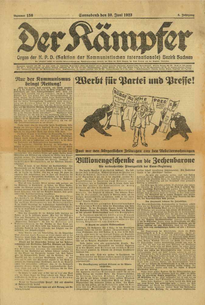 Organ der K.P.D. (Sektion der Kommunistischen Internationale) Bezirk Sachsen
